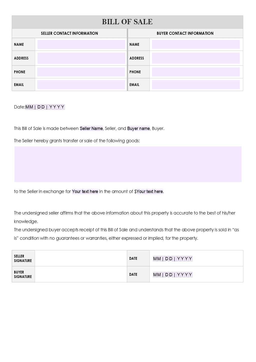A bill of sale is a legal record that details all the details of a transaction between a purchaser and a vendor. It helps make sure that both parties get on the same page and with any luck stops any kind of future misunderstandings.